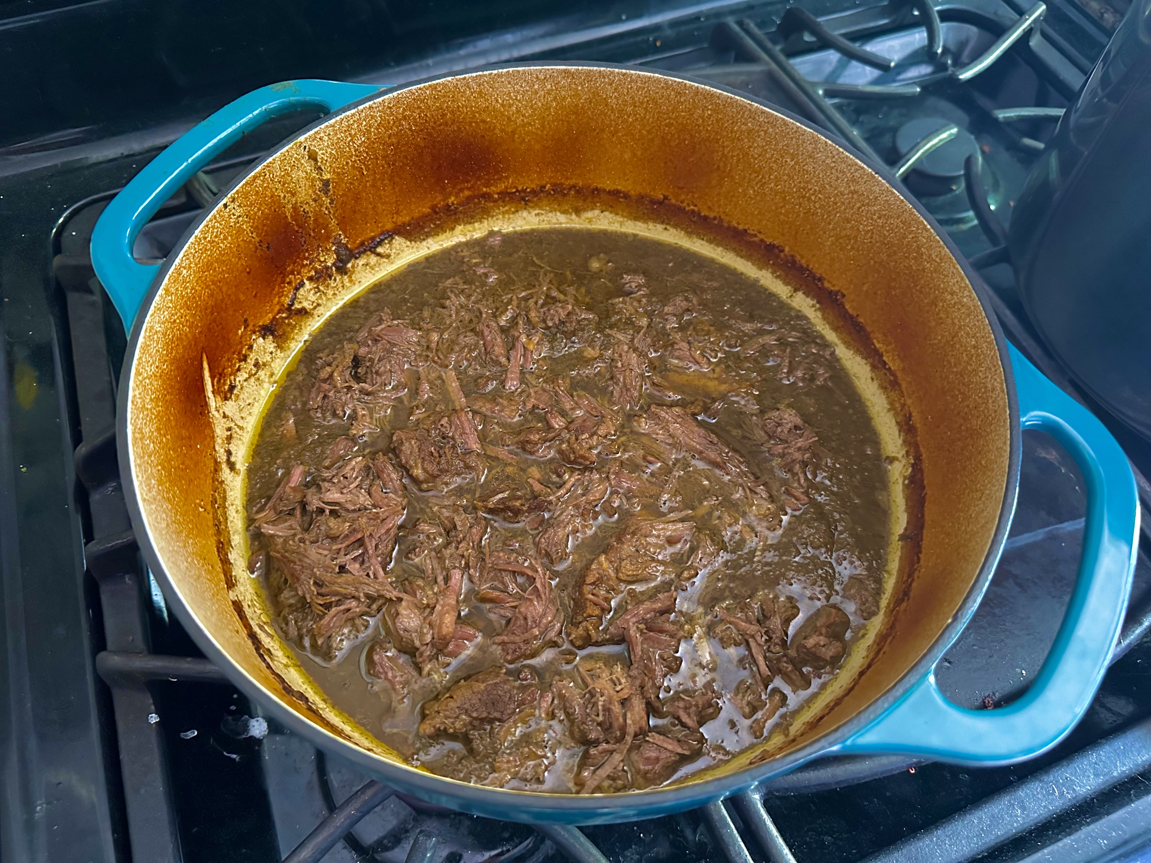 - Note: If the beef isn’t all the way covered by liquid, add some water to cover (don’t need to worry much about mixing it together)